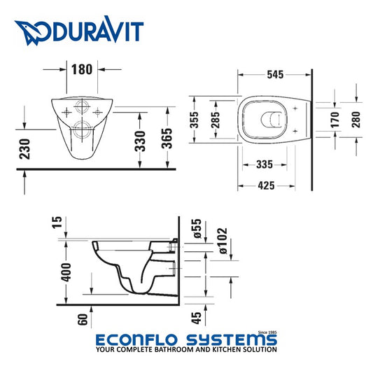 Duravit Happy D.2 Wall Hung Rimless WC Basin 2222090000