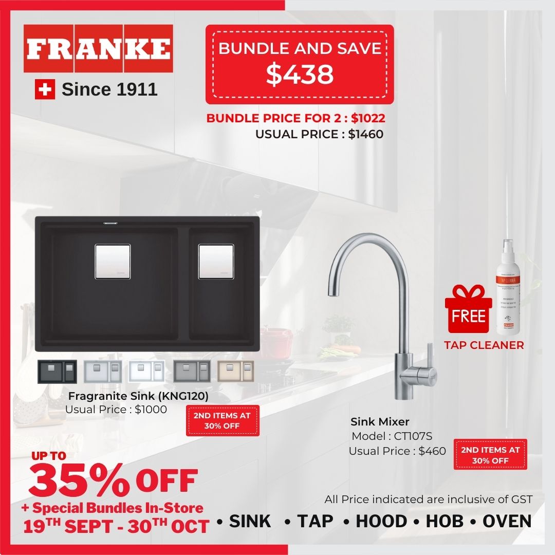 Choose the perfect combination for your kitchen with the Fragranite Sink and Sink Mixer bundle, now with 30% off on the sink and a free tap cleaner.