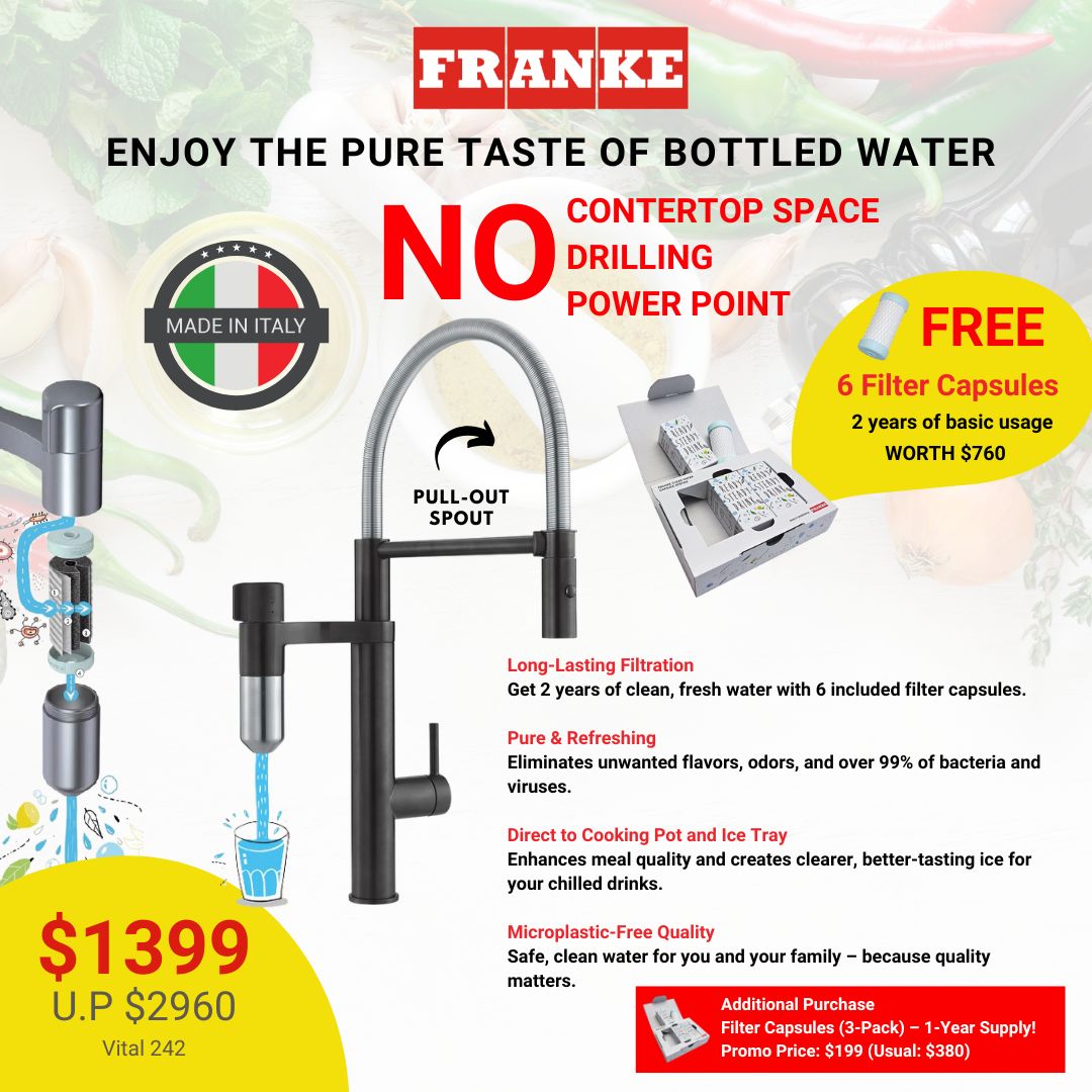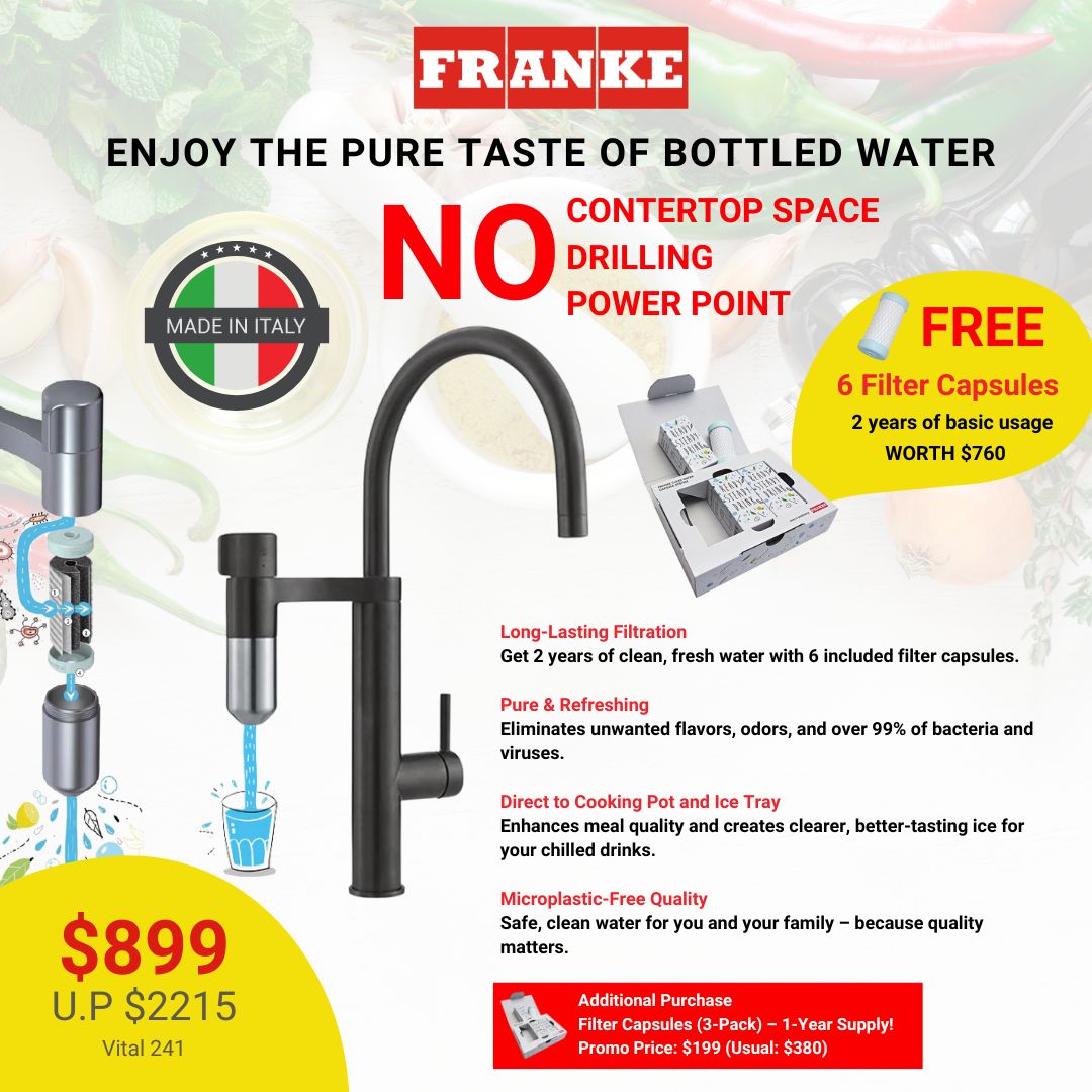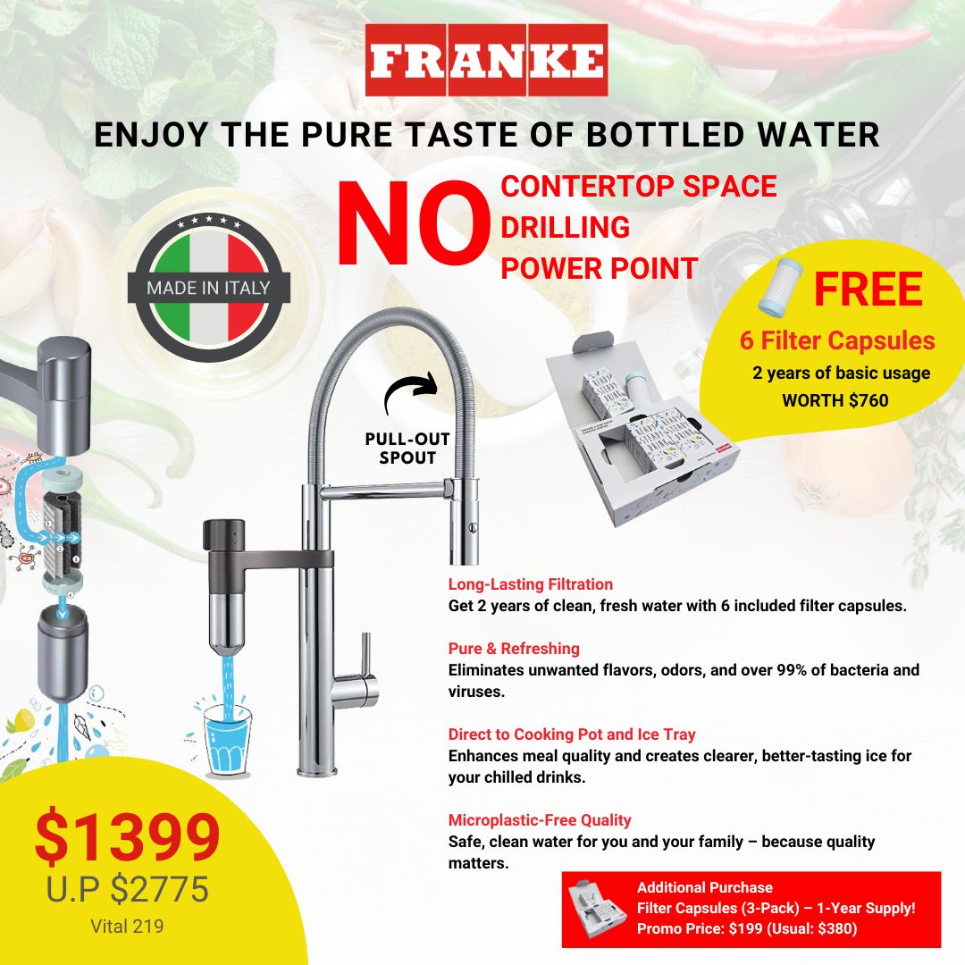 Get the clean taste of bottled water right from your tap with our advanced filtration system. Enjoy a hassle-free setup – no countertop space, drilling, or power point needed.