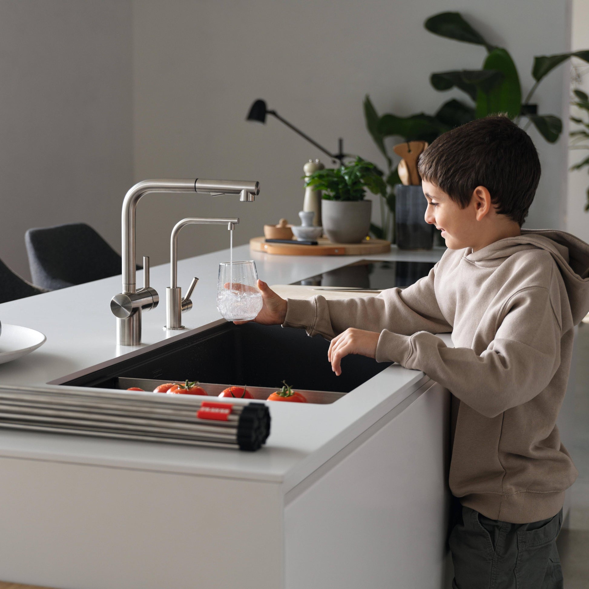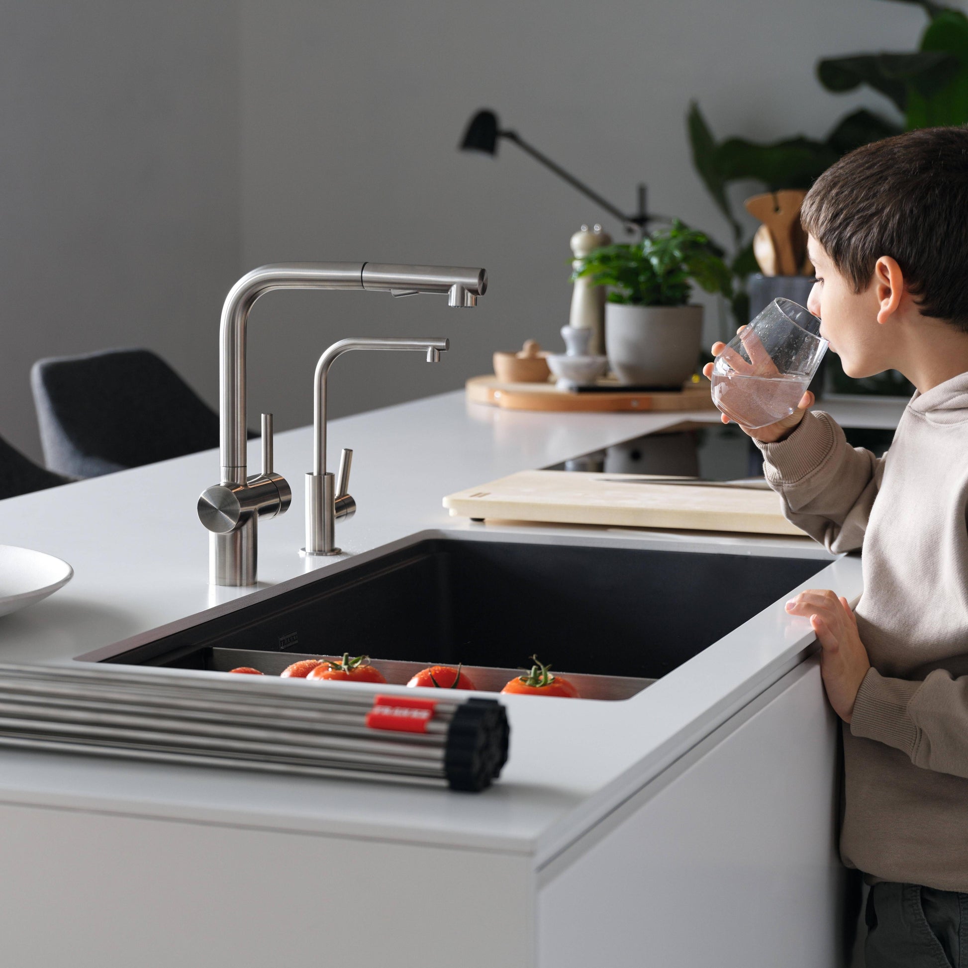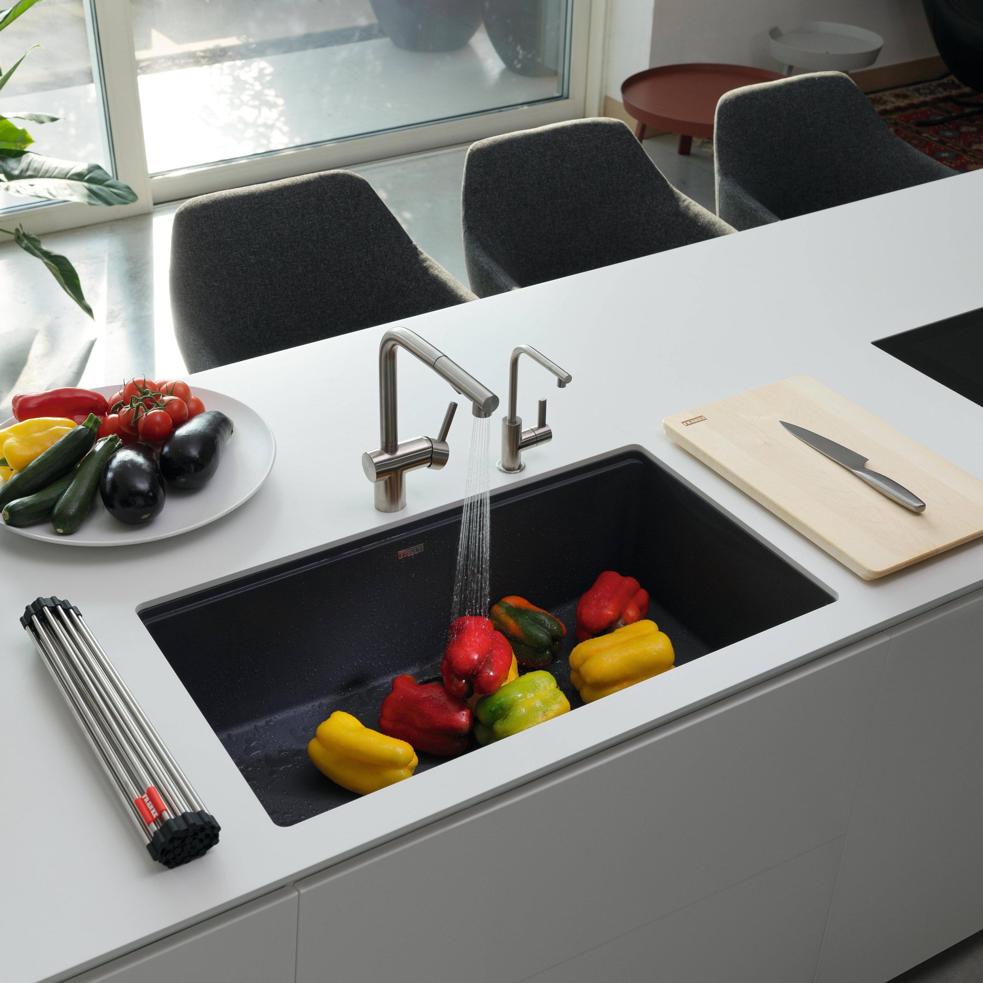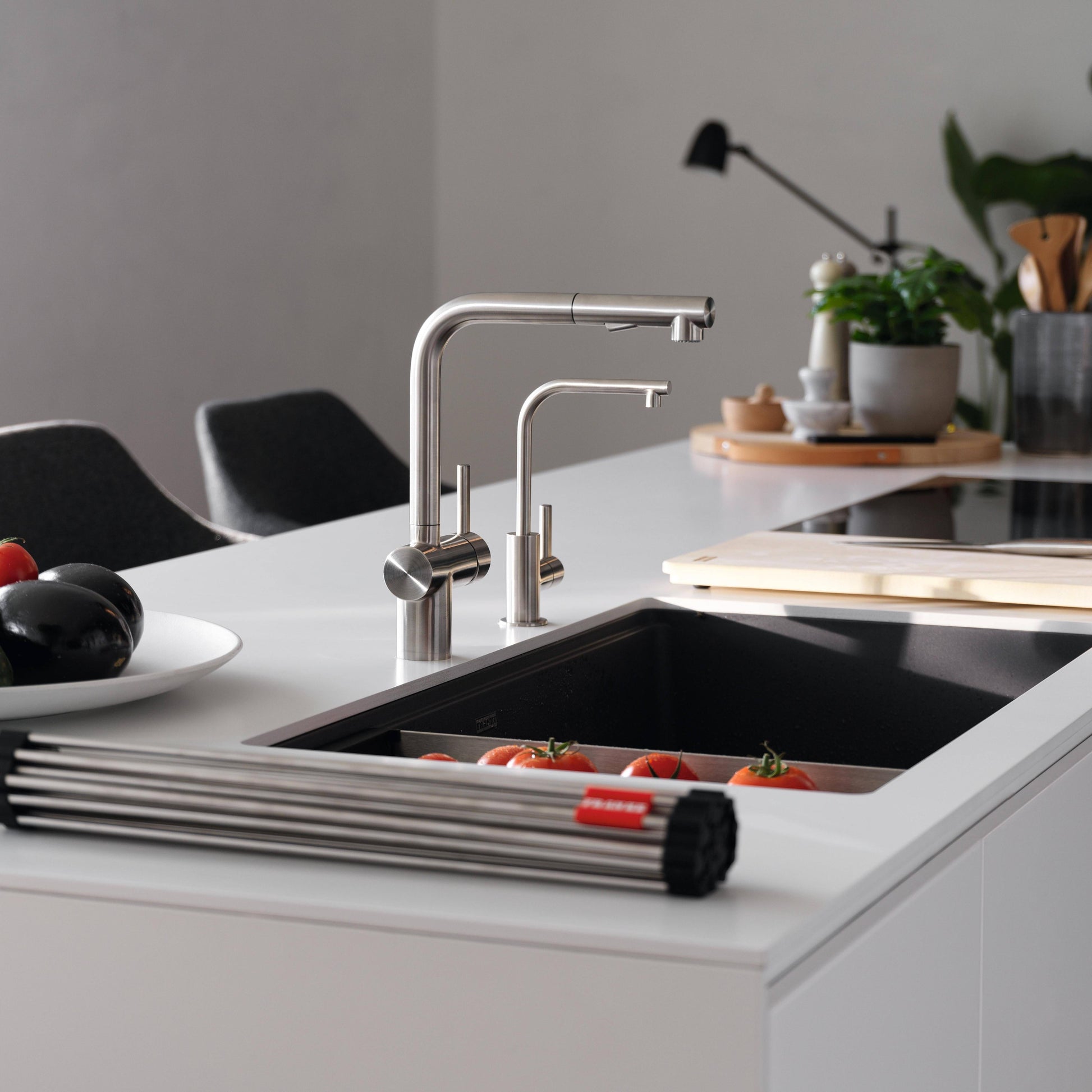 Rollamat 44 Stainless Steel, Overall size 468x440mm. Handy accessory which can be used to drain glasses or crockery, useful as a trivet for hot pans. Can be rolled up & stored away when not in use.